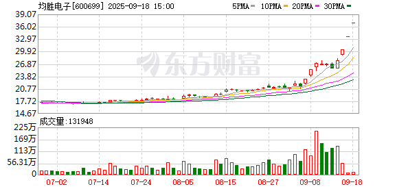 9月17日,均胜电子发布《股票交易异常波动公告》称,公司股票已连续3个交易日内日收盘价格涨幅偏离值累计达到20%。同时,公司股票自2025年9月15日以来累计涨幅约为30.37%,同期上证指数累计涨幅约为0.15%,Wind汽车零部件指数累计涨幅约为7.78%。