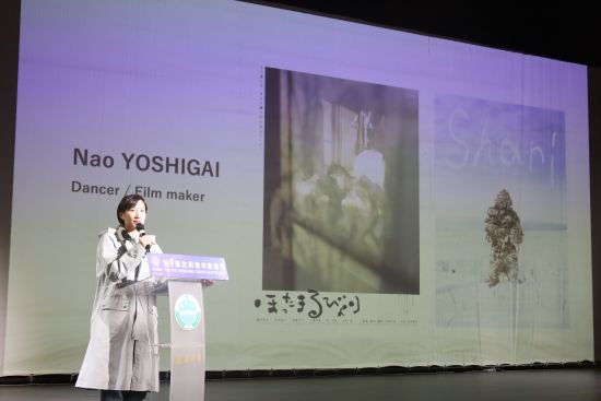 日本电影导演吉开菜央用日文以“电影创作中的身体感知与叙事探索” 为题,分享了她融合舞蹈与影像的创作方法。她以舞蹈演员的身体经验为创作起点,常以“拉洋片”式画稿构思场景,在拍摄中保持开放即兴创作的状态,让身体与自然、声音共同生成影像。她指出:“影像并非记录,而是一种体感的延伸。女性身体可以成为影像思考的起点,而非被观看的对象。”