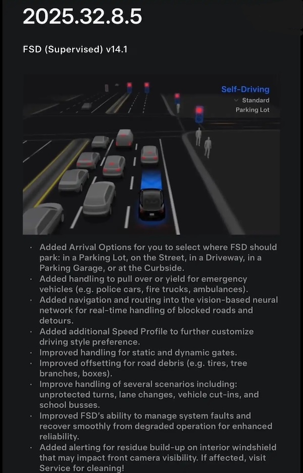 继2024年12月在美国开始向部分车主推送V13版本后,特斯拉FSD迎来了近一年来的首次重大升级。