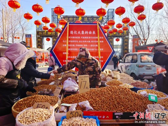 火升腾年味浓,振兴奋进正当时。于洪区造化大集年货节引爆新春消费热潮。中新社记者赵桂华摄 与会领导向群众派发满载祝福的春联。中新社记者赵桂华摄