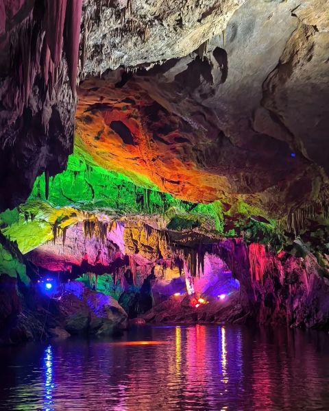 船行深处,头顶的“星空”与岸边的石笋交相辉映。导游指着一块形似“玉象吸水”的钟乳石打趣道:“这可是大自然的鬼斧神工,比咱们人工雕琢的更有韵味。”